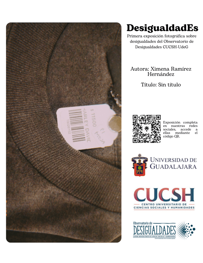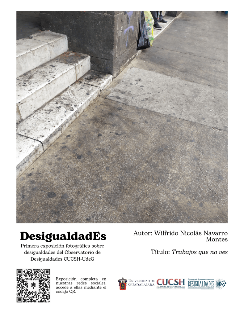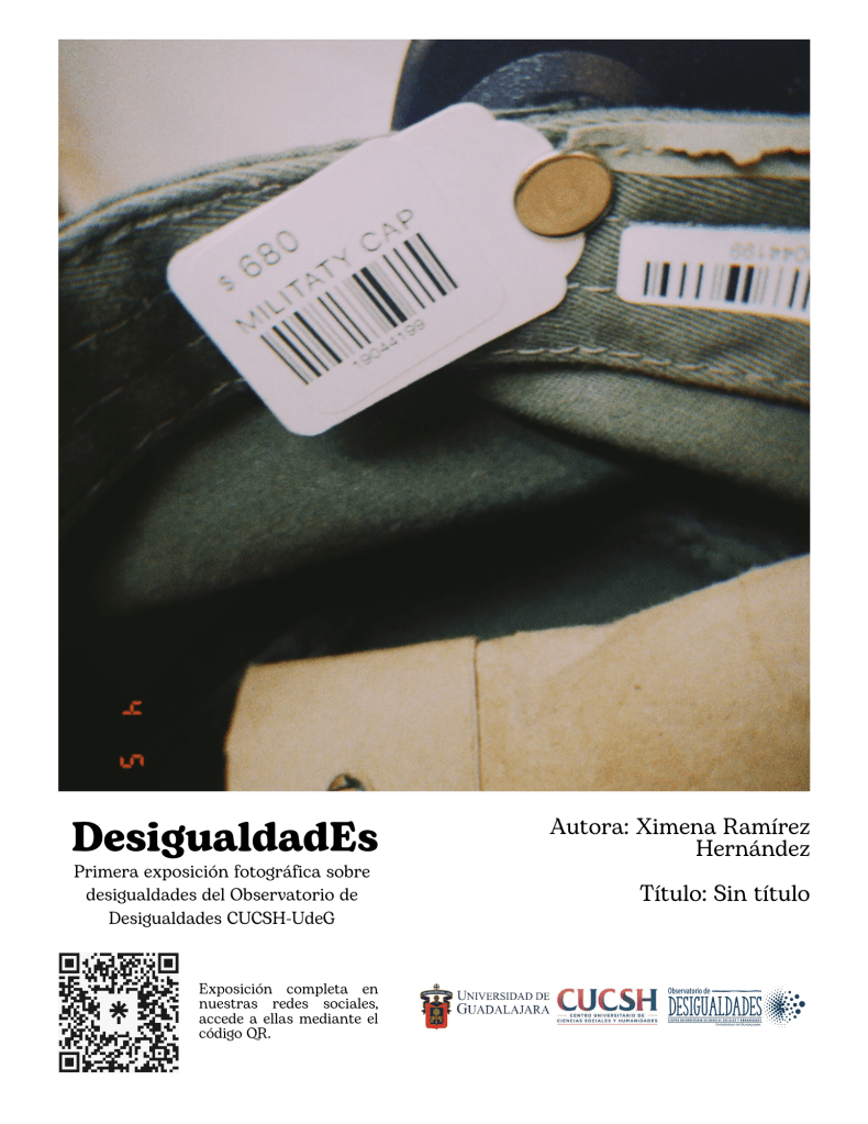 La exposición está compuesta por 57 imágenes realizadas por nueve estudiantes de la Licenciatura en Sociología de la Universidad de Guadalajara durante marzo, abril y mayo de 2023 en diferentes localidades de México, principalmente en Jalisco. Las obras son una mirada íntima y personal a las desigualdades cotidianas e invitan a la reflexión y al diálogo en torno a ellas.